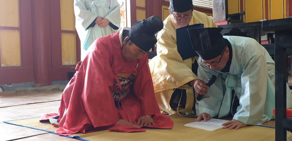 오찬 후에는 40여명의 장의들이 함께 참석한 가운데 유림회의를 통해 추대된 조영철(77) 신임전교가 향교대성전에 인사를 올리는 ‘신임전교 대성전 행공’이 진행됐다.