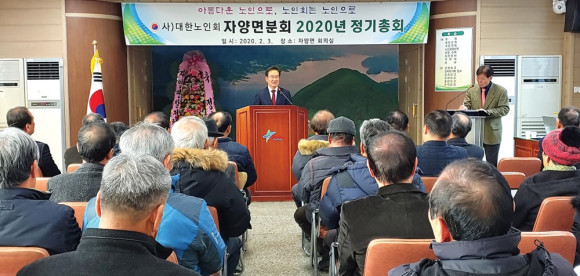 ↑↑ 대한노인회 자양면분회 정기총회가 열리고 있다.