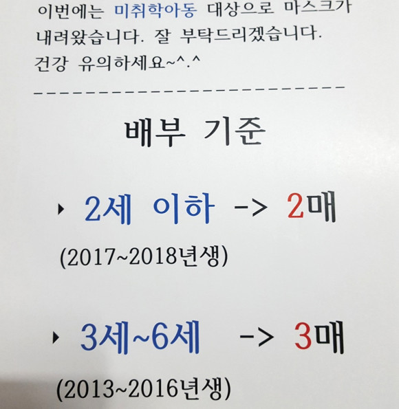 미취학 아동 마스크 배부, 너무 좋아한 학부형들