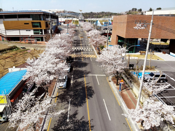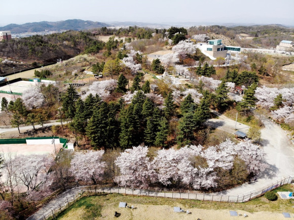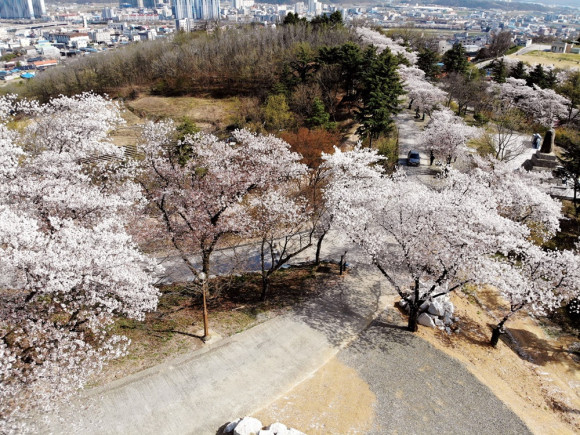 하늘에서 본 봄풍경… 벚꽃 휘날리는 메모리얼파크