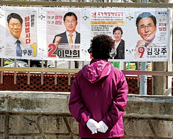 제21대 국회의원 선거운동이 시작되면서 시민들의 관심도가 높아지고 있다. 지정된 장소에 선거벽보가 부착되자 지나가는 시민들은 선거에 나온 인물들을 꼼꼼히 살펴보고 있다.
