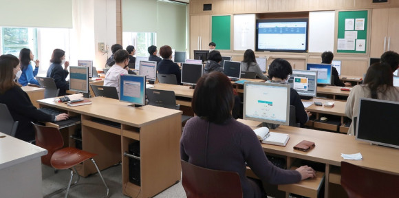 금호초등학교(교장 신남숙)는 4월 8일 학교 컴퓨터실에서 온라인 개학에 대비하여 원격수업과 관련한 교사 역량강화 연수를 실시했다(사진).