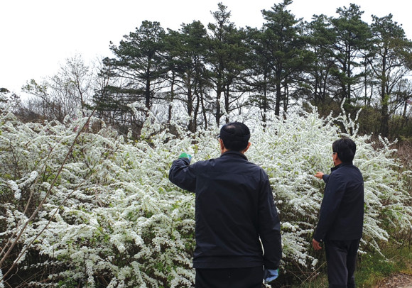 임고면 양평마을 도로변에 설유화가 만개해 코로나19로 인한 외출자제로 갑갑함에 지친 시민들에게 마음의 평온을 되찾아 주고 있다. 달콤한 향기로 주민들의 발길을 붙잡고 있는 듯하다.