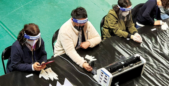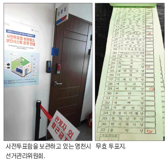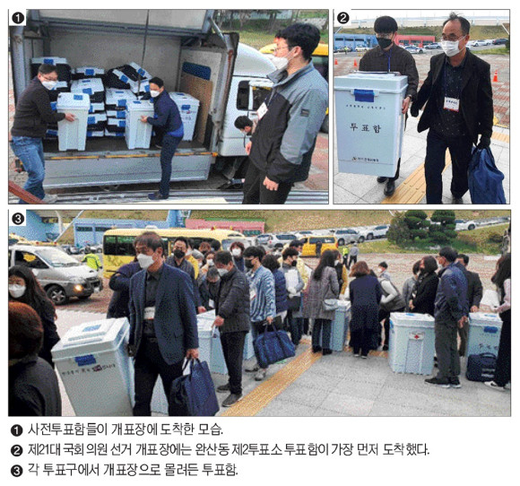 | | | ↑↑ 선거개표 종사원들이 마스크와 함께 안면보호대를 착용하고 있다. | | ⓒ 영천시민뉴스 | |