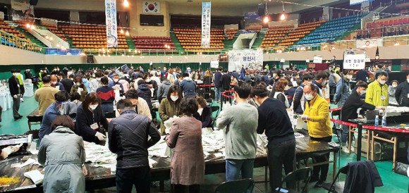 | | | ↑↑ 영천실내체육관에 마련된 개표장에서 선거개표 종사원들이 바쁘게 개표를 하고 있는 모습. | | ⓒ 영천시민뉴스 | |