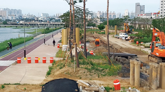 완산동쪽 둔치에 하수관 공사가 한창이다. 이곳은 시민들이 운동이나 산책 등으로 많이 나오는 곳이며, 또 화단이 잘 정비돼 있어 꽃구경 나오는 시민들도 있는데, 공사 측은 공사장비, 공사 자재 등을 편의주의 식으로 방치, 안전관리가 소홀하다는 지적이다.