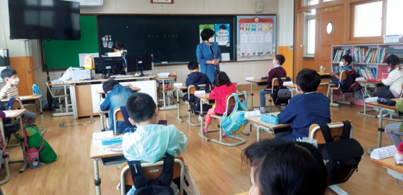 동부초등학교(교장 권해인)는 5월 27일 학생들이 등교(1학년~4학년)하자 교사들은 철저한 예방 수칙 지키기를 실천했다. 개인위생 철저는 물론 특히 교장 교사의 교실 찾아가 인사하기, 급식시간 간격유지, 수시로 하는 체온체크 등을 실천하고 있다.