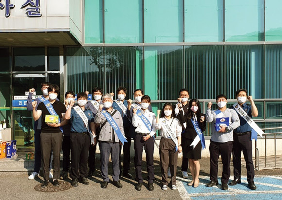 영천경찰서 청렴동아리 바른손은 5월 28일 이른 아침부터 출근하는 직원들을 상대로 에너지 음료를 전달하며 의무위반 방지와 활기찬 직장분위기 조성을 위해 캠페인을 전개했다.