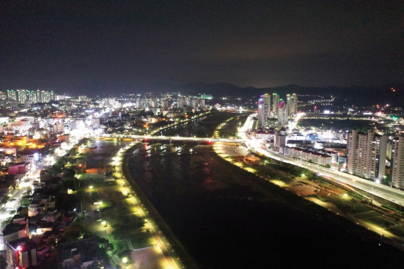 코로나19를 잘 이겨내고 있는 영천시의 야경이 아름답다. 본사 상공에서 영천시 전체를 바라본 야경은 시원하면서도 평화스럽다.