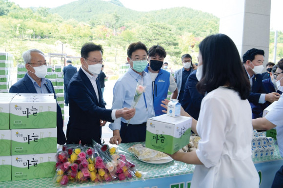 이와 함께 코로나19 사태에 따른 소비위축으로 어려움을 격고 있는 화훼농가와 낙농농가에 도움을 주기 위해 꽃과 우유를 무료로 나눠주는 행사도 함께 실시됐다.