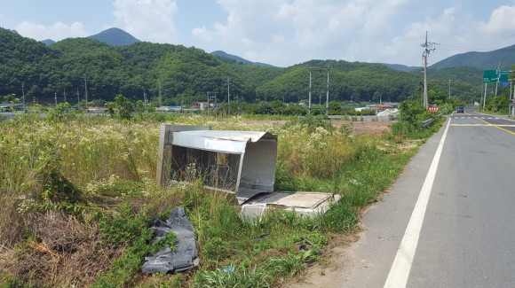 화북면 자천리 우회도로(자천에서 시내방향) 도로변에 있던 교통안전시설(무인단속기)이 사고에 의해 파손된지 몇 주가 지났으나 그대로 방치되고 있다. 독자가 사진을 찍어 제보했는데, 7월 5일 현장을 확인하니 그대로 있어 조치가 필요하다.