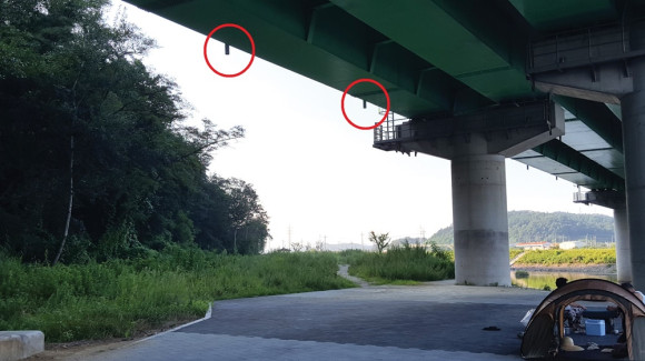 대전동에 위치한 대전교는 우회도로 구간인데, 대전교 빗물통(빨간 원부분)이 끝이 허공에 있어 비가오면 밑에서 휴식하고 있는 시민들에 불편을 주고 있다. 이곳은 고향의강 상류지역이라 이응호 징검다리가 있는 등 시민들의 휴식처로 조금씩 알려지고 있는 곳이다.