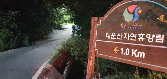 첫날인 7월 31일에는 야간에 방문해 보았다. 대운산 자연휴양림을 가는 길은 생각보다 협소하고 길이 험해 순탄치는 않았다. 거기다 입구에는 사유지로 무단사용을 금지한다는 푯말까지 있어 차량통행이 쉽지만은 않았다. 입구에 도착하자 가장 먼저 눈에 띈 것은 양산시 시설관리공단에서 세워 둔 인원제한 푯말이다. 물론 코로나19로 인한 것이다.