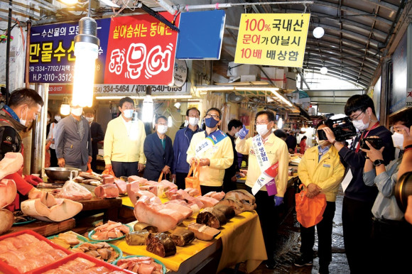 코로나19 청정지역 영천에서 안전한 명절 분위기 조성 및 지역 경제 활성화를 위한 추석맞이 전통시장 장보기 행사가 열렸다. 영천시는 9월 25일 영천버스터미널, 영천역을 방문해 방역활동을 진행한 뒤 영천공설시장을 찾아 추석 제수용품을 마련하는 시간을 가졌다.