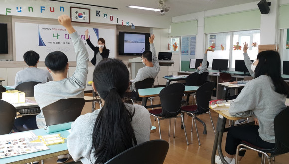 산동중학교(교장 김동환)는 전교생들이 영어전용교실에서 10월 5일부터 7일까지 도전 성취프로그램으로 ‘나 디자인하기’를 진행했다(사진).