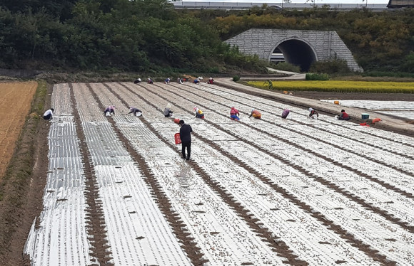 마늘파종 한창인 들판