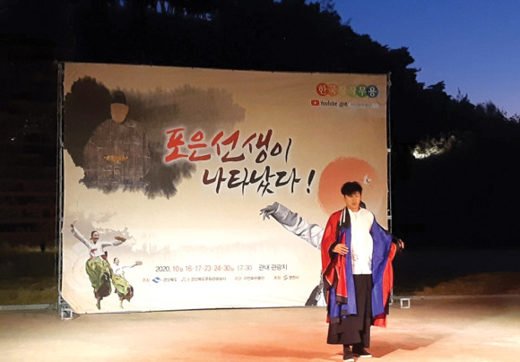 ‘포은선생이 나타났다’ 공연이 10월 17일부터 열리고 있다. 이 공연은 이언화 무용단 주관으로 열리는데, 영천 관내 곳곳을 다니며 공연하고 있다. 23일 오후엔 한의마을에서 열렸으며 코로나19 예방수칙을 준수하면서 많은 시민들이 관람했다.