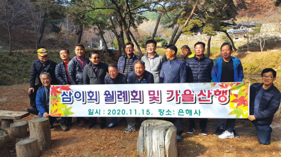 영천고 32기 졸업생들의 모임인 삼이회(회장 윤덕수)는 11월 15일 은해사 산행 대회를 겸한 단합회를 가졌다. 문화원 밑 둔치에 집결한 동기들은 은해사까지 버스로 이동, 은해사 입구에서 운부암까지 왕복 8km 구간을 산행한 뒤 은해사 입구 식당에서 즐거운 시간을 보냈다.