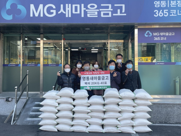 정연복 이사장은 “코로나19 등으로 어려움을 겪고 있는 이웃 주민에게 따뜻한 연말 선물이 되기를 바라며 지속적으로 나눔 봉사를 펼쳐 더 많은 이웃에게 다가갈 수 있는 영동새마을금고가 되겠다”고 밝혔다.