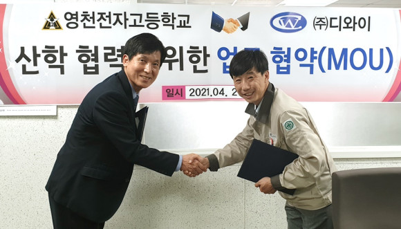 영천전자고등학교(교장 김동환)는 4월 28일 칠곡군에 위치한 ㈜디와이(대표이사 정정훈)에서 산학 협력을 위한 업무 협약식(MOU)을 진행했다.