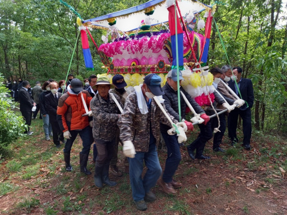 드문 매장 문화가 괴연동에서 진행됐다. 5월 2일 오전 마을 젊은층들이 나서 상여를 메고 장지로 가고 있다. 1990년대 초반까지만 해도 일반적인 장례식이었으나 이제는 거의 자취를 찾아 볼 수 없을 정도다. 상여소리나 상여놀이는 지역별로 무형문화재로 지정하기도 했다.
