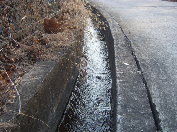 현재 배수지 주변 작은 수로 양쪽을 보면 겨울이지만 물이 계속 흘러가고 있는 현상을 볼 수 있다. 하루 양만 해도 엄청나게 보였다.