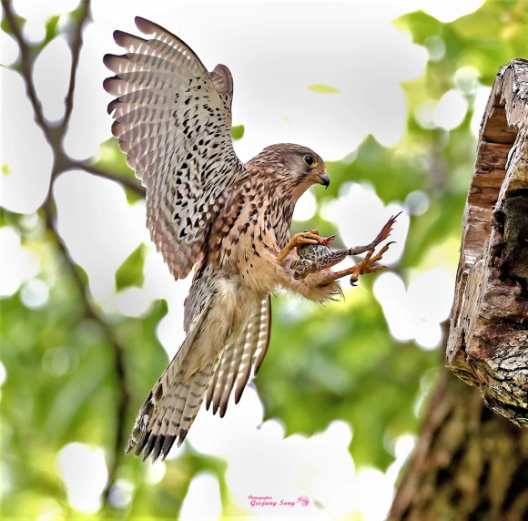 오리장림에 여러종의 희귀새가 둥지를 틀고 생활하고 있는데, 이를 촬영하기 위해 전국 사진작가들이 화북면 자천리 오리장림으로 몰리고 있다. 사진은 5월 13일 황조롱이가 개구리를 잡아 둥지에 있는 새끼들에게 전해주는 순간을 송기정 작가(창원시)가 촬영한 모습이다.