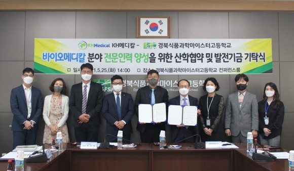 경북식품과학마이스터고(교장 최창원)는 5월 25일 바이오 진단기기 및 시약분야의 기술력을 인정받고 있는 케이에이치메디칼(대표 홍만형)과 산학협력 협약을 체결했다.