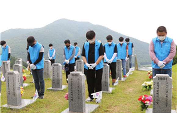 호국보훈의 달을 기리기 위해 폴리텍대학 로봇캠퍼스(학장 이연보)가 6월 28일 영천호국원을 방문하여 봉사활동을 실시했다. 교직원 및 재학생 20여명은 순국선열에 대한 묵념, 호국원 환경미화활동을 펼쳤다.