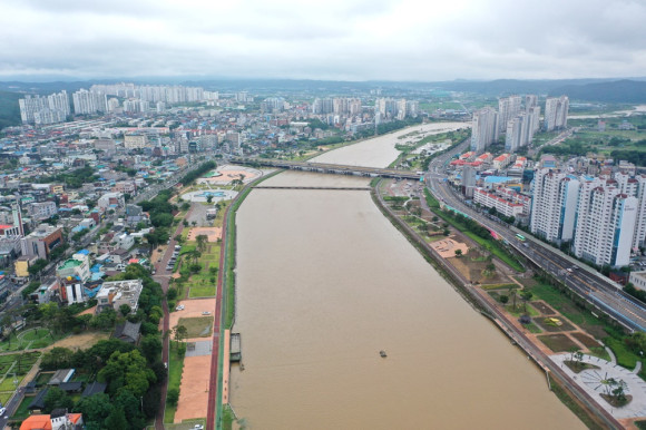 장마로 인해 7월 들어 대부분 비가 내렸다. 비가 그치자 시내는 아주 깨끗해 보였다. 시내 상공에서 금호강을 이루며 내려가는 물을 보니 풍요로움을 상징하는 듯 하다.