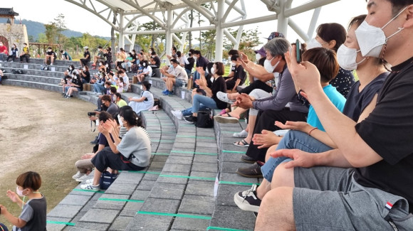 정부에서 접종률 70% 이상일 때 위드(함께하는)코로나를 시행할 것으로 보이는 가운데, 10월 2일과 3일 화랑설화마을에서는 ‘화랑의 후예들 위대한 도전’ 행사가 열렸다. 화랑설화마을을 방문한 가족단위 참가자들이 공연을 보면서 즐거워하고 있는데, 영천에서 위드코로나가 먼저 시작한 것 같은 분위기다.