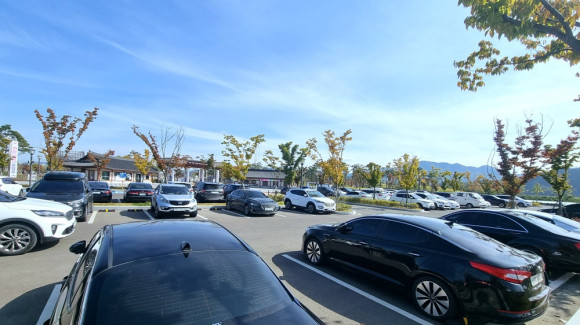 코로나19 위기에도 영천화랑설화마을은 관광지로 각광받으며 3주간 가을 야간개장을 이끌어 왔다. 이번 3주동안 하루 평균 530명이 찾아 가을 야간개장에만 9900여명이 다녀갔다. 사진은 10월 24일 휴일을 맞아 영천화랑설화마을 이용을 위해 차량들이 주차장을 가득 매웠다.