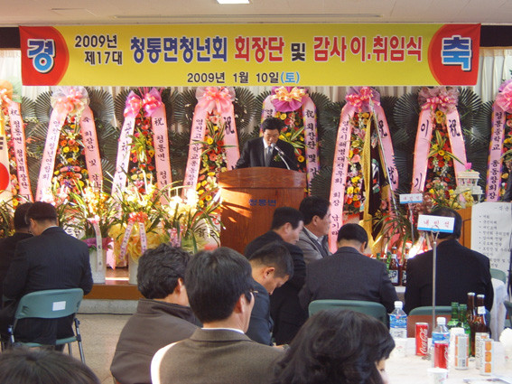 청통면 청년회 회장단 이 취임식이 지난 10일 오후 청통면 사무소 2층 회의실에서 한혜련 도의원, 박종태 면장, 김영모 허순애 시의원, 정동채 축협조합장, 김문수 청통면 번영회장, 이성희 인천도시개발공사대표, 성오표 영천시청연연합회장 및 각 지역 회장 등 2백여 명이 참석한 가운데 열렸다.