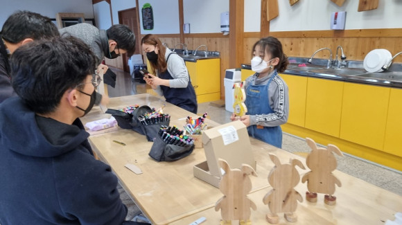 보현산 밑에 위치한 영천목재문화체험장이 코로나19에도 잘 운영되고 있다. 1월 22일 오전 체험장에는 학부형들과 아이들이 목재를 이용해 다양한 목재인형이나 장난감을 만들고 있었다. 목재문화체험장은 코로나19에도 예약제(네이버검색)로 운영되고 있어 아이들에겐 인기다.