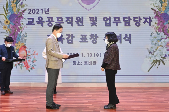 임종식 경북도교육감은 1월 19일 경상북도교육청 웅비관에서 2021년 교육공무직원 및 업무담당자 유공자에 대한 표창 수여식을 가지고 총 149명을 표창했다. 코로나19 상황에서도 타의 귀감이 되는 교육공무직원을 치하했다.