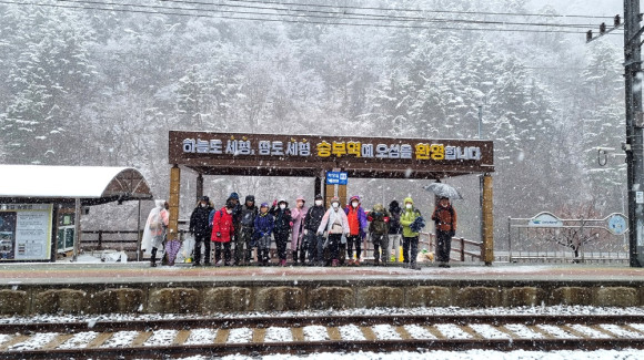 영천시경계탐사대(대장 김성근)는 처음으로 외지 견학을 다녀왔다. 19일 오전 6시32분 북영천역을 출발해 산타로 유명한 봉화군 분천역을 지나 승부역에서 내려, 승부역에서 분천역까지 12km 구간(낙동강 상류)을 트레킹하고 영천역으로 돌아왔다.