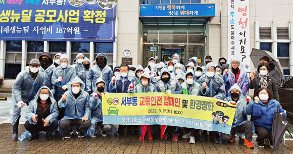 서부동생활안전협의회(회장 김동식), 서부동자율방범대(대장 양현철), 서부동부녀자율방범대(대장 박영옥) 등 회원 50여 명은 3월 19일 교통안전 캠페인 및 환경정화 활동을 펼쳤다. 우천에도 불구하고 회원들은 교통안전 캠페인에 이어 고향의 강 일원에 환경정화 활동을 함께 실시했다.
