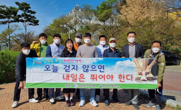 영천시걷기연맹(회장 모석종) 회원들은 오랜만에 영천문화원 밑 둔치에 모여 4월 걷기행사를 개최했다. 회원들은 오전 일찍 둔치에 모여 영화교, 금강산성과 완산2통, 미소지움2차 아파트와 둔치 꽃밭을 거쳐서 돌아오는 약 12km 구간을 걸었다.