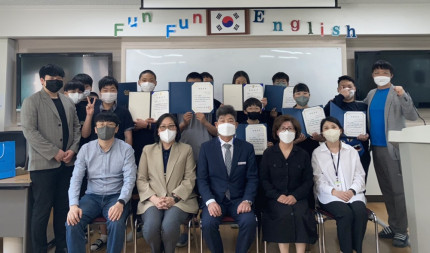 |  | | | ⓒ 영천시민뉴스 | 산동중학교(교장 권철환)는 4월 20일 영어 전용 교실에서 전교생이 모여 산동 장학회와 영천시 장학회에서 주는 장학증서를 수여했다.