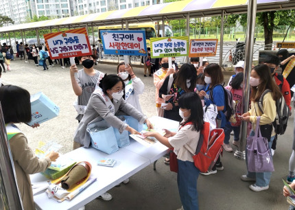 |  | | | ⓒ 영천시민뉴스 | 포은초등학교(교장 심선자)는 5월 12, 13일 위클래스의 또래상담동아리 학생 9명과 함께 학교 후문에서 전교생을 대상으로 뉴-스타트 학업중단 예방 캠페인을 열었다. 영천시 청소년 상담 복지센터의 연계 협력으로 이루어진 이번 캠페인은 학생들의 학업중단을 사전에 예방하기 위해 운영되었으며 학업중단숙려제에 대한 안내와 관련 기관 이용 방법에 대한 정보를 제공했다.