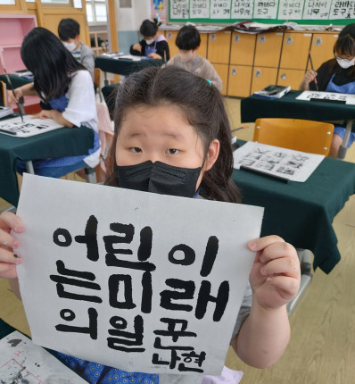 6회차 12시간의 수업을 마친 5학년 학생은 “처음에는 붓을 들고 글을 쓰는 것이 어색하고 팔도 많이 아팠는데 지금은 많이 익숙해져서 재미있다”며 “기회가 되면 서예를 더 배우고 싶다.”며 서예에 흥미를 드러냈다.