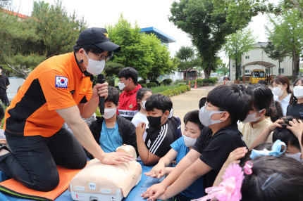 임고초등학교(교장 강석종)는 최근 발생한 대형 산불 피해에 경각심을 갖고 화재 예방에 힘쓰기 위해 5월 19일 영천 소방서와 연계하여 합동 소방훈련을 실시하였다. 이날 훈련은 소방공무원과 소방차량이 동원되어 원인미상의 화재를 가정해 학생들의 화재 대피 훈련과 화재 초기진압 활동 및 소방차량 방수 등 합동 소방훈련이 단계별로 진행됐다. 소방훈련 후에는 소화기 사용법 등 소방시설 사용법에 대한 교육과 함께 화재 경각심을 고취하기 위한 소방안전교육 및 심폐소생술 교육을 병행 실시하며 소방훈련의 의미를 더했다.