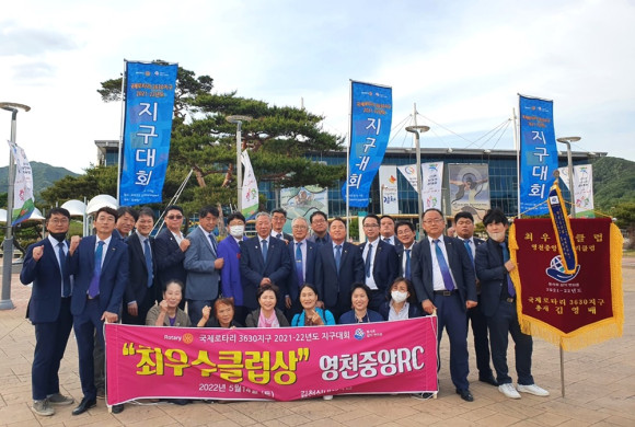 영천중앙로타리클럽(회장 서원기)은 14일 김천실내체육관에서 열린 국제로타리 3630지구 2021-22년 지구대회에서 최우수 클럽상을 수상했다. 서원기 회장 “한마음 한뜻으로 동참해주신 회원 및 수선화 회원들에게도 진심으로 감사드린다.”고 인사했다.