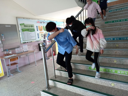 소방훈련을 시작하기 전 각 반에서 학생들을 대상으로 소방교육 자료와 대피이동 동선을 참고하여 사전 안전교육을 실시하였다.