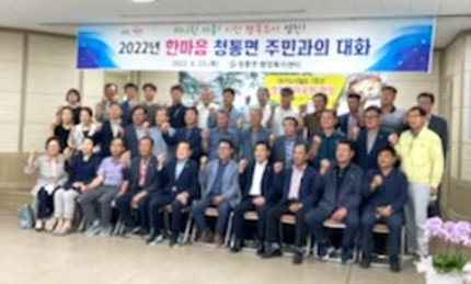 최기문 영천시장은 주민과의 소통을 위한 하나된 시민 행복도시 영천 한마음 청통면 주민과의 대화를 6월 23일 청통면행정복지센터 2층 대회의실에서 가졌다.