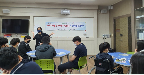| | | ⓒ 영천시민뉴스 | | 포은고등학교(교장 박영남)는 전교생을 대상으로 7월 18, 19일 학교 영어교실에서 상상력, 표현력, 집중력, 자존감을 높이는 창의성 개발을 위한 정서지원 프로그램 ‘ 나의 삶에 철학을 담다’ 프로그램을 진행했다. 이번 프로그램은 영천시 사회적기업 ㈜생각연구소(대표 김기임)와 함께 여러 가지 이미지를 매개로 자신을 표현하며 내가 속한 공동체, 내 주변의 상황들을 들여다보고 문제해결 솔루션을 소통과 공감활동을 통해 제시하는 활동으로 이뤄졌다.
