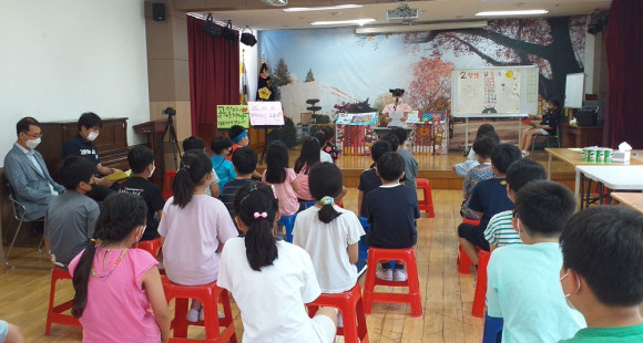 | | | ⓒ 영천시민뉴스 | | 임고초등학교(교장 강석종)는 7월 20일 2학년 재학생 8명이 평소 좋아하는 책을 읽고, 낭독하고 싶은 부분을 찾아 어울리는 목소리로 낭독해 보는 학급 낭독회를 열었다. 동화책에서 마음에 드는 부분을 골라 소리 내어 정확하게 읽고 마음이 드러나게 공감하며 낭독하는 연습 과정에서 책읽기의 즐거움을 느끼고 감정 이입의 경험을 했다.