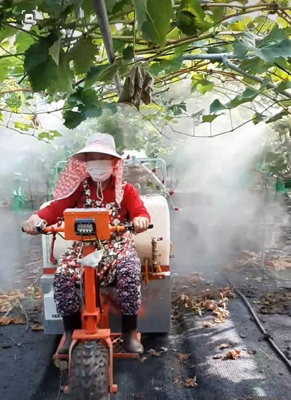 여성들도 쉽게 농약을 칠 수 있는 장비가 등장해 관심을 모으고 있다. 북안면 한 농가에서 포도전용살포기를 이용해 포도밭에 여성농민이 농약을 치고 있는 모습이 여유로워 보여 기계에 대한 관심이 모아지고 있다.