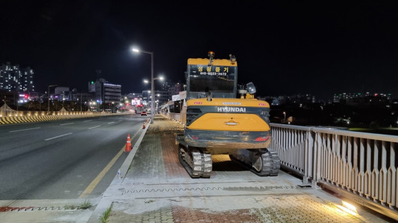 영동교 안전공사 중에 하나인 보도블록을 다시 교체하는 공사가 지난주 진행됐는데, 8월 22일 밤 10시 공사에 투입된 중장비가 영동교 인도위에 그대로 있었다. 영동교를 지나는 시민들의 안전을 위협할 수 있어 공사중인 현장의 야간 장비 점검도 필요하다.