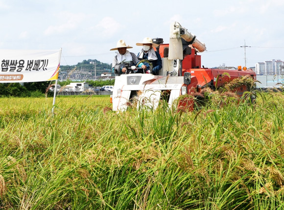 8월 25일 영천시 주남들녁에서 추석 전 햅쌀용 벼 베기를 시작했다. 문종복 씨(75)가 이번에 수확하는 벼는 4월 25일 모내기를 하고 120여 일 만에 수확했다. 친환경으로 재배한 벼는 추석 전 햅쌀로 소비자들에게 인기가 높다. 사진은 최기문 시장과 문종복 씨가 벼를 수확하는 모습.